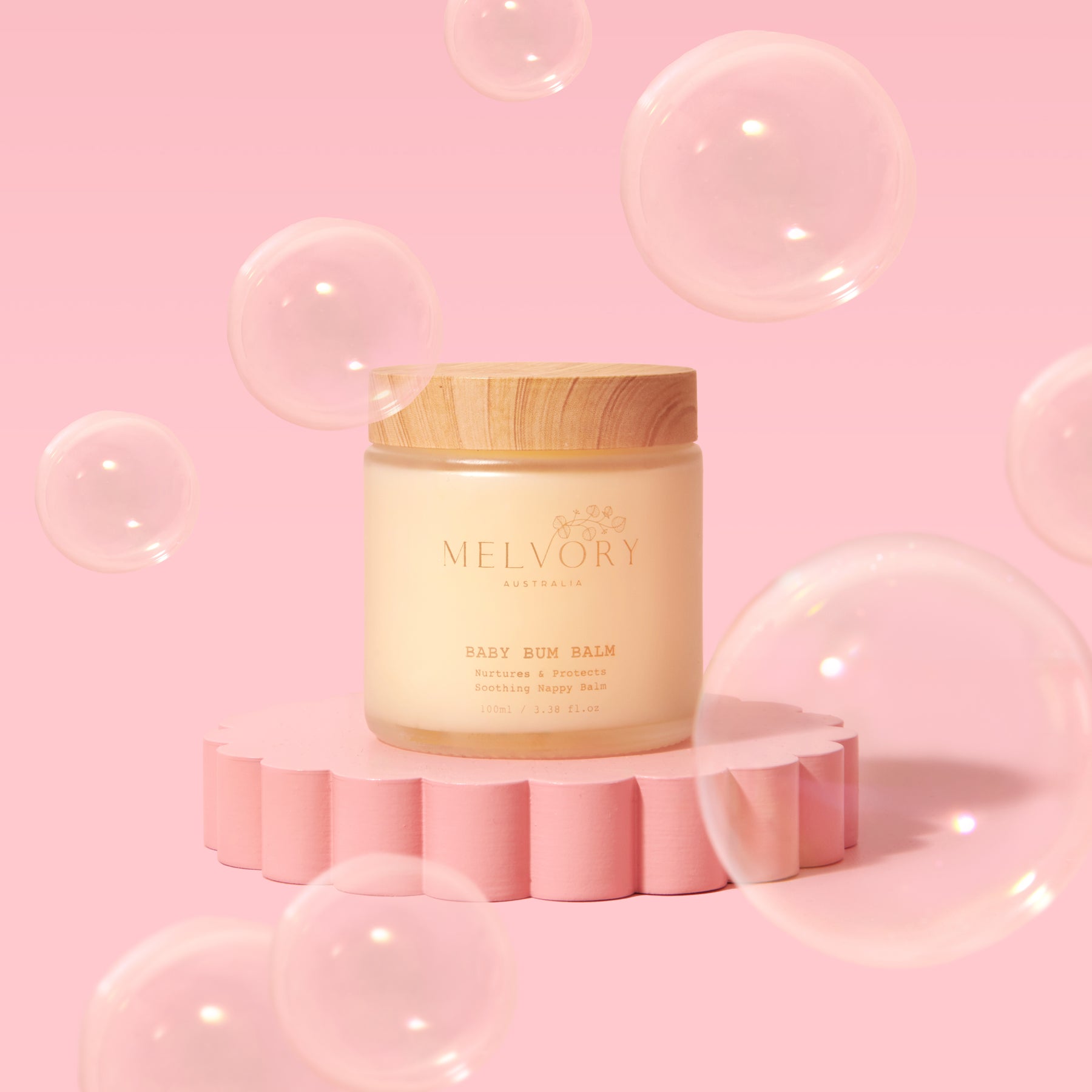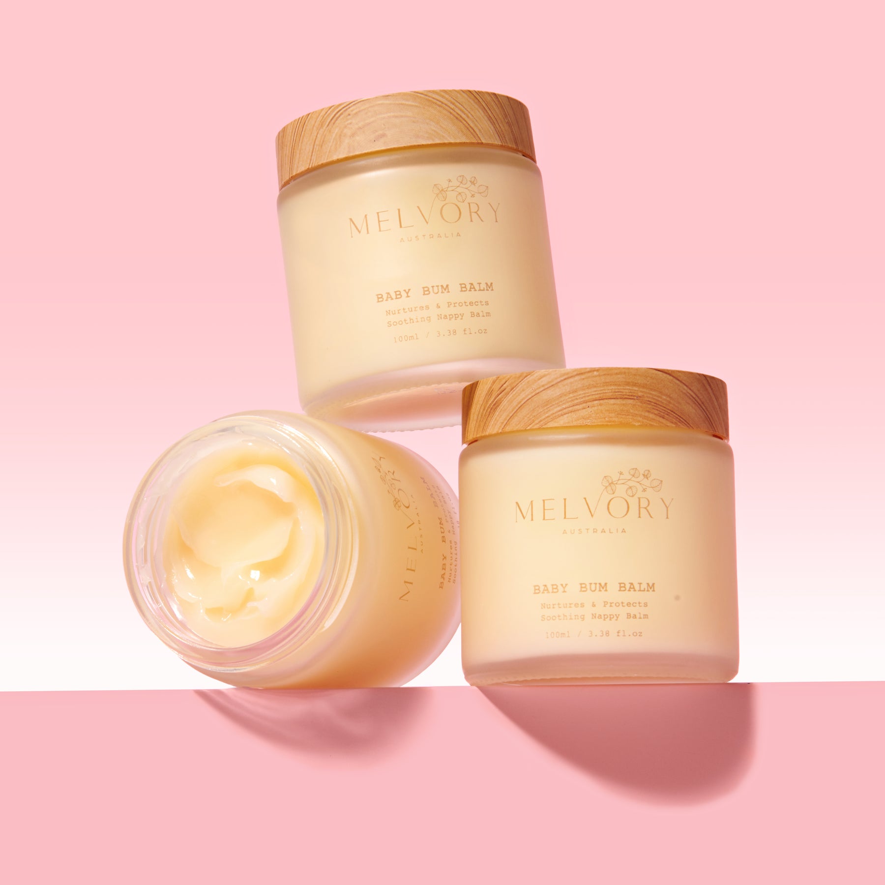 For many babies, the most common skincare product used on them is a nappy cream. Melvory Skincare’s Baby Bum Balm uses 100% natural nourishing Organic Ingredients to soothe the delicate skin in the diaper area, keeping baby’s bottom soft and protected from redness.