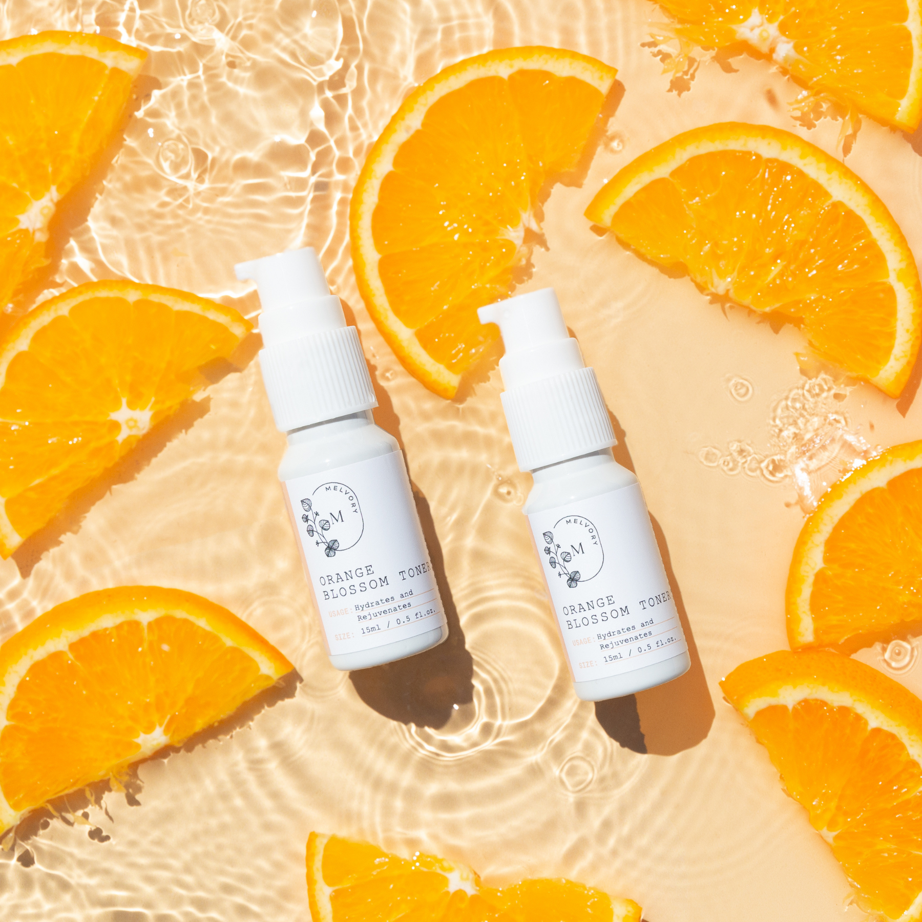 Spray a few puffs of our fresh citrusy Orange Blossom Toner all over your face and neck. Allow to dry naturally. This is a hydrating toner combined with organic botanical extracts that can help brighten skin tone, reduce redness and balance skin pH.